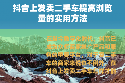 在当今数字化时代,抖音已成为众多商家推广产品和服务的重要平台,对于卖二手车的商家来说也不例外,在抖音上发卖二手车怎样才能提高浏览量呢?以下是一些实用的方法。