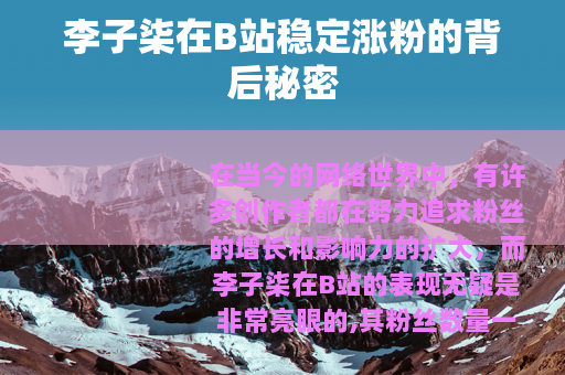 在当今的网络世界中,有许多创作者都在努力追求粉丝的增长和影响力的扩大,而李子柒在B站的表现无疑是非常亮眼的,其粉丝数量一直处于稳定增长的态势。