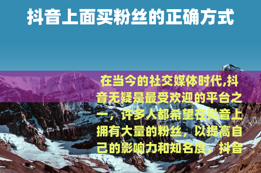 在当今的社交媒体时代,抖音无疑是最受欢迎的平台之一,许多人都希望在抖音上拥有大量的粉丝,以提高自己的影响力和知名度,抖音上面怎么买粉丝呢?这是一个很多人都关心的问题。
