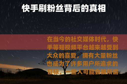 在当今的社交媒体时代,快手等短视频平台越来越受到大众的喜爱,拥有大量粉丝也成为了许多用户所追求的目标,一些人可能会被所谓的“快手便宜刷粉丝”服务所吸引。