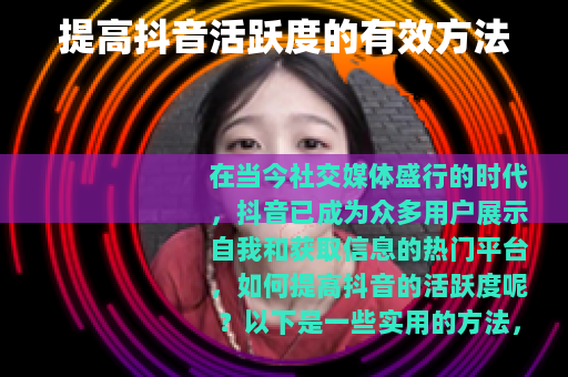 在当今社交媒体盛行的时代,抖音已成为众多用户展示自我和获取信息的热门平台,如何提高抖音的活跃度呢?以下是一些实用的方法。