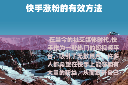在当今的社交媒体时代,快手作为一款热门的短视频平台,吸引了无数用户,许多人都希望在快手上能够拥有大量的粉丝,从而提升自己的影响力和知名度,快手怎么涨粉丝呢?以下是一些实用的方法。