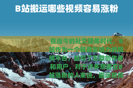 在当今的社交媒体时代,B站作为一个极具影响力的视频平台,吸引了无数创作者和用户,对于许多想要在B站涨粉的人来说,搬运视频是一种常见的途径,B站搬运什么视频涨粉呢?