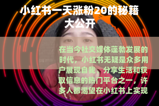 通过以上这些方法的综合运用,你就有可能在小红书上实现一天涨粉20的目标,开启你的小红书涨粉之旅,在这个充满活力的平台上收获更多的关注和喜爱。