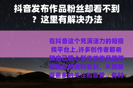 在抖音这个充满活力的短视频平台上,许多创作者都希望自己精心制作的作品能够被粉丝们及时看到,从而获得更多的关注和喜爱,有时候会出现一种令人困惑的情况,那就是发布的作品粉丝却看不到,这无疑会让创作者们感到失落和不解。