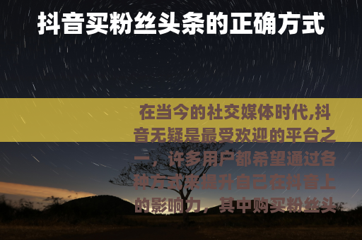 在当今的社交媒体时代,抖音无疑是最受欢迎的平台之一,许多用户都希望通过各种方式来提升自己在抖音上的影响力,其中购买粉丝头条就是一种常见的手段,在考虑如何在抖音买粉丝头条时,我们需要了解一些重要的信息。