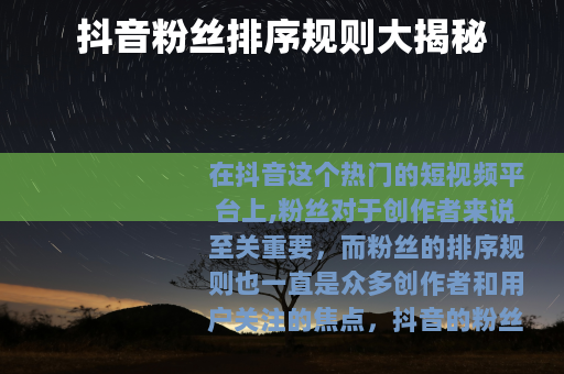 在抖音这个热门的短视频平台上,粉丝对于创作者来说至关重要,而粉丝的排序规则也一直是众多创作者和用户关注的焦点。