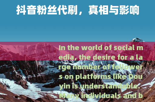 需要注意的是,抖音粉丝代刷是违反平台规定的行为,不建议用户进行此类操作,以上文章仅为基于相关话题的创作,旨在阐述其利弊,帮助用户正确看待该现象。