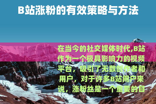 在当今的社交媒体时代,B站作为一个极具影响力的视频平台,吸引了无数创作者和用户,对于许多B站用户来说,涨粉丝是一个重要的目标,它不仅能带来更多的关注和认可,还能为创作者开启更多的机会。