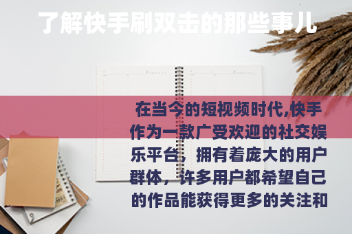 在当今的短视频时代,快手作为一款广受欢迎的社交娱乐平台,拥有着庞大的用户群体,许多用户都希望自己的作品能获得更多的关注和双击点赞,以提高自己在平台上的影响力,这也使得一些所谓的快手刷双击服务应运而生。