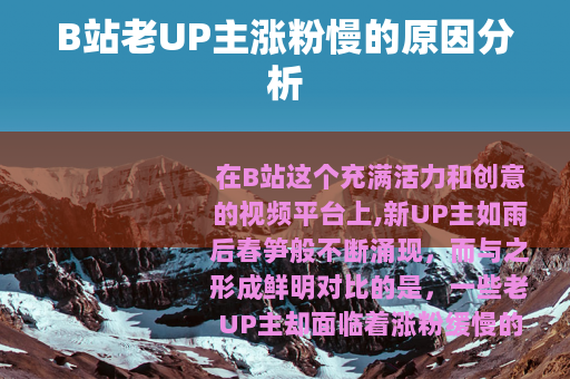 在B站这个充满活力和创意的视频平台上,新UP主如雨后春笋般不断涌现,而与之形成鲜明对比的是,一些老UP主却面临着涨粉缓慢的困境,这一现象引发了众多人的关注,那么究竟是什么原因导致B站老UP主涨粉慢呢? 同质化是一个重要因素,随着B站的不断发展,各类视频主题和内容日益丰富,但也导致了大量相似内容的出现,老UP主可能在早期凭借某一特色内容吸引了一批粉丝,但随着时间推移,如果不能持续创新,不断推出新颖独特的视频,就很容易陷入内容同质化的泥沼,观众在面对众多类似的视频时,往往会选择更具新鲜感的新UP主的作品,从而导致老UP主的涨粉速度受到影响。