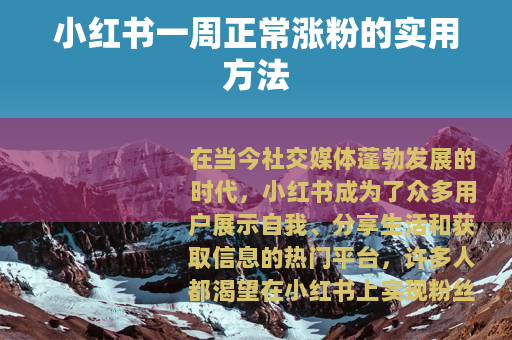 在当今社交媒体蓬勃发展的时代,小红书成为了众多用户展示自我、分享生活和获取信息的热门平台,许多人都渴望在小红书上实现粉丝的快速增长,那么如何在一周内实现小红书的正常涨粉呢?以下是一些实用的方法。
