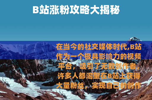 在当今的社交媒体时代,B站作为一个极具影响力的视频平台,吸引了无数创作者,许多人都渴望在B站上获得大量粉丝,实现自己的创作价值,B站怎么涨粉呢?以下是一些实用的方法。 质量是关键,要制作出有吸引力、有价值的视频内容,无论是有趣的搞笑视频、深度的知识讲解,还是精彩的生活记录,都要确保能引起观众的兴趣,在选题上,可以关注当下的热点话题和流行趋势,结合自己的特长和风格,创作出独特的视频,如果擅长绘画,就可以制作绘画教程、展示绘画过程等相关视频,满足绘画爱好者的需求。