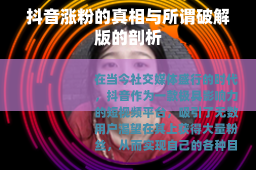 在当今社交媒体盛行的时代,抖音作为一款极具影响力的短视频平台,吸引了无数用户渴望在其上获得大量粉丝,从而实现自己的各种目标,无论是个人的兴趣展示还是商业的品牌推广,市场上出现了一些声称是抖音涨粉破解版的东西,引起了很多人的关注。