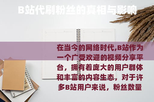 在当今的网络时代,B站作为一个广受欢迎的视频分享平台,拥有着庞大的用户群体和丰富的内容生态,对于许多B站用户来说,粉丝数量往往被视为一种衡量影响力和受欢迎程度的重要指标,便出现了所谓的“B站代刷粉丝”服务。