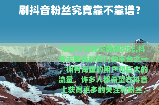 在当今的社交媒体时代,抖音无疑是最热门的平台之一,拥有海量的用户和巨大的流量,许多人都希望在抖音上获得更多的关注和粉丝,以提升自己的影响力和商业价值,一个问题便应运而生:刷抖音粉丝靠谱吗?