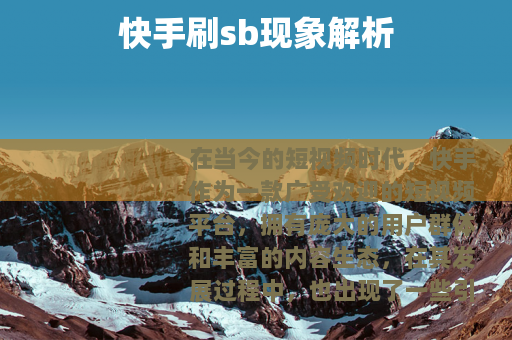 在当今的短视频时代,快手作为一款广受欢迎的短视频平台,拥有庞大的用户群体和丰富的内容生态,在其发展过程中,也出现了一些引人关注的现象,快手刷sb”就是一个比较特别的情况。