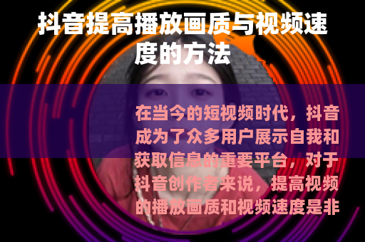 在当今的短视频时代,抖音成为了众多用户展示自我和获取信息的重要平台,对于抖音创作者来说,提高视频的播放画质和视频速度是非常关键的,这不仅能提升用户的观看体验,还有助于增加视频的传播度,以下是一些在抖音中提高播放画质和视频速度的有效方法。