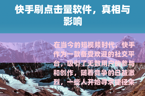 在当今的短视频时代,快手作为一款备受欢迎的社交平台,吸引了无数用户的参与和创作,随着竞争的日益激烈,一些人开始寻求捷径来获取更多的关注和点击量,这时候快手刷点击量软件便应运而生。