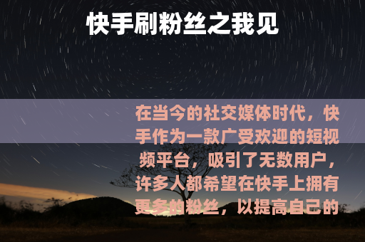 在当今的社交媒体时代,快手作为一款广受欢迎的短视频平台,吸引了无数用户,许多人都希望在快手上拥有更多的粉丝,以提高自己的影响力和知名度,而在这个过程中,出现了一些所谓的快手刷粉丝服务,比如子潇网络等。