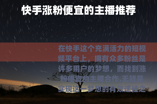 在快手这个充满活力的短视频平台上,拥有众多粉丝是许多用户的梦想,而找到涨粉便宜的主播合作,无疑是实现这一梦想的有效途径之一。
