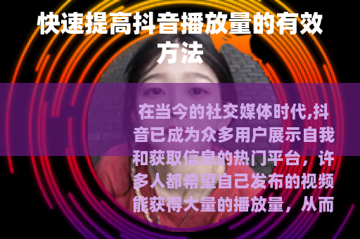 通过以上这些方法的综合运用,相信你可以在一定程度上快速提高抖音的播放数量,让你的作品在抖音平台上获得更多的关注和喜爱,不断尝试和优化,根据用户的反馈及时调整自己的创作策略,才能在抖音这个竞争激烈的平台上取得更好的成绩。