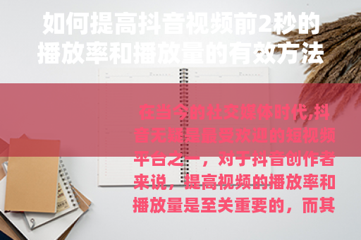 在当今的社交媒体时代,抖音无疑是最受欢迎的短视频平台之一,对于抖音创作者来说,提高视频的播放率和播放量是至关重要的,而其中视频前2秒的表现更是关键所在,以下是一些可以帮助你提高抖音视频前2秒播放率和播放量的实用方法。