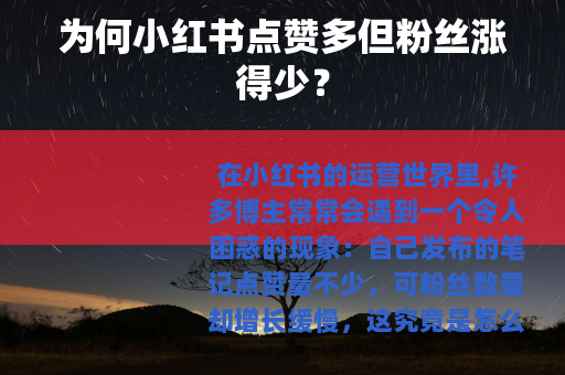 在小红书的运营世界里,许多博主常常会遇到一个令人困惑的现象:自己发布的笔记点赞量不少,可粉丝数量却增长缓慢,这究竟是怎么回事呢?
