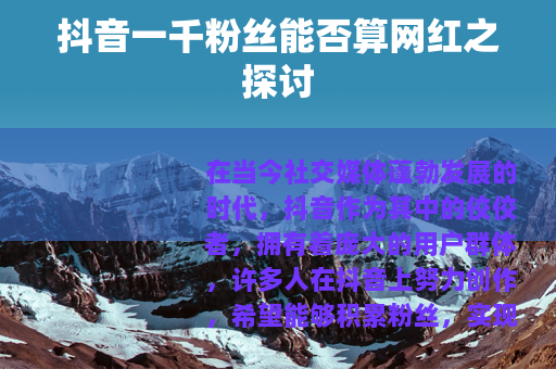 在当今社交媒体蓬勃发展的时代,抖音作为其中的佼佼者,拥有着庞大的用户群体,许多人在抖音上努力创作,希望能够积累粉丝,实现自己的网红梦,拥有一千粉丝在抖音上算网红吗?