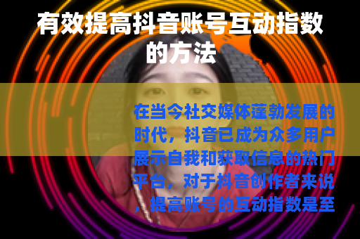 在当今社交媒体蓬勃发展的时代,抖音已成为众多用户展示自我和获取信息的热门平台,对于抖音创作者来说,提高账号的互动指数是至关重要的,它不仅能增加账号的活跃度,还有助于提升账号的权重和影响力,抖音账号的互动指数究竟该如何提高呢?以下是一些实用的方法。