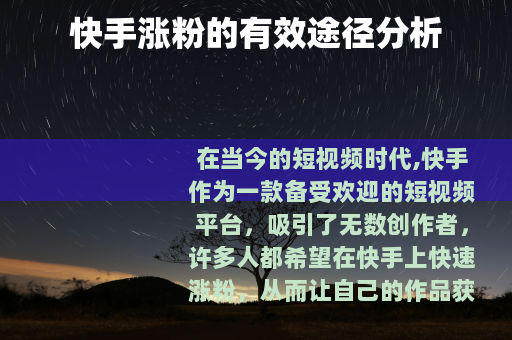 在当今的短视频时代,快手作为一款备受欢迎的短视频平台,吸引了无数创作者,许多人都希望在快手上快速涨粉,从而让自己的作品获得更多的关注和认可,有没有一些相对有效的方法来实现快手涨粉呢? 质量是关键,创作优质、有趣、有价值的视频内容是吸引粉丝的基础,无论是搞笑段子、美食制作、知识分享还是生活趣事,只要能引起观众的共鸣和兴趣,就有可能获得大量的点赞、评论和转发,进而增加粉丝数量,一些美食博主通过详细展示独特的美食制作过程,搭配生动的解说和诱人的画面,吸引了众多美食爱好者关注,粉丝量也随之不断攀升。