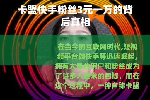 在当今的互联网时代,短视频平台如快手等迅速崛起,拥有大量的用户和粉丝成为了许多人追求的目标,而在这个过程中,一种声称卡盟快手粉丝3元一万的现象引起了不少人的关注。