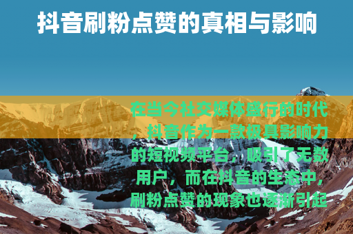 在当今社交媒体盛行的时代,抖音作为一款极具影响力的短视频平台,吸引了无数用户,而在抖音的生态中,刷粉点赞的现象也逐渐引起了人们的关注。