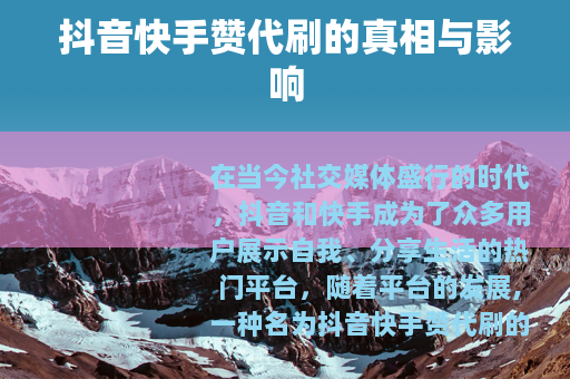在当今社交媒体盛行的时代,抖音和快手成为了众多用户展示自我、分享生活的热门平台,随着平台的发展,一种名为抖音快手赞代刷的现象也悄然兴起。