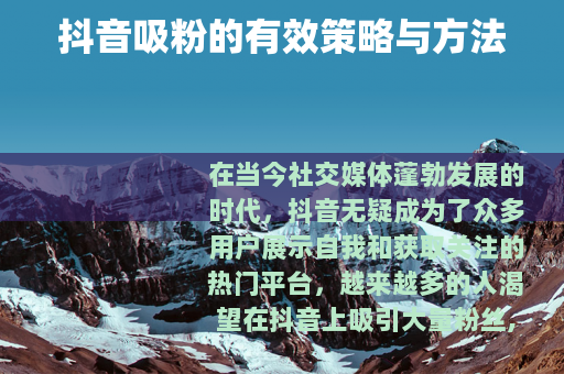 在当今社交媒体蓬勃发展的时代,抖音无疑成为了众多用户展示自我和获取关注的热门平台,越来越多的人渴望在抖音上吸引大量粉丝,实现自己的社交价值和商业目标。
