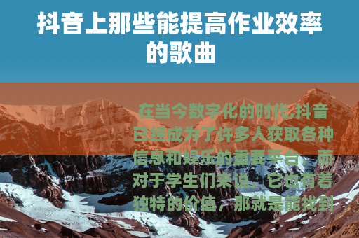 在当今数字化的时代,抖音已经成为了许多人获取各种信息和娱乐的重要平台,而对于学生们来说,它也有着独特的价值,那就是能找到一些有助于提高作业效率的歌曲。