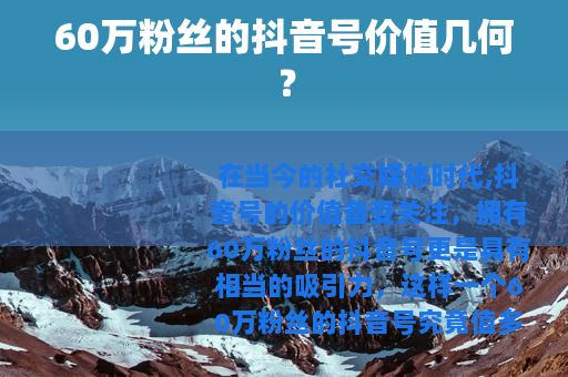 在当今的社交媒体时代,抖音号的价值备受关注,拥有60万粉丝的抖音号更是具有相当的吸引力,这样一个60万粉丝的抖音号究竟值多少钱呢?