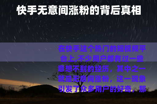 在快手这个热门的短视频平台上,不少用户都有过一些意想不到的经历,其中之一就是无意间涨粉,这一现象引发了众多用户的好奇,那么快手无意间涨粉是怎么回事呢?