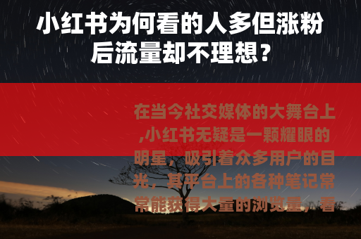 在当今社交媒体的大舞台上,小红书无疑是一颗耀眼的明星,吸引着众多用户的目光,其平台上的各种笔记常常能获得大量的浏览量,看似一片繁荣景象,不少用户却发现一个令人困惑的问题,那就是自己的小红书账号虽然看的人多,粉丝也在不断增长,但实际获得的流量却并没有想象中那么理想,这究竟是为什么呢?