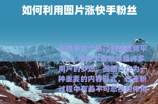 在快手这个热门的短视频平台上,拥有大量粉丝是许多用户的梦想,而图片作为一种重要的内容形式,在涨粉过程中有着不可忽视的作用。