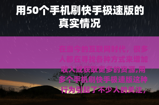 有人可能会想,用50个手机刷快手极速版是不是能带来巨大的收益呢?这背后存在着诸多需要考虑的因素。