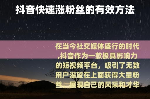 在当今社交媒体盛行的时代,抖音作为一款极具影响力的短视频平台,吸引了无数用户渴望在上面获得大量粉丝,展现自己的风采和才华,如果你也想在抖音上快速涨粉,以下是一些切实可行的方法。