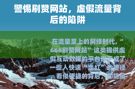 在流量至上的网络时代,“666刷赞网站”这类提供虚假互动数据的平台似乎成了一些人快速“走红”的捷径,看似便捷的背后,却隐藏着损害账号安全、违反平台规则甚至触犯法律的多重风险。