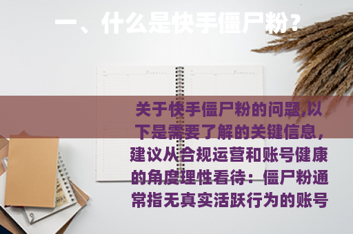 关于快手僵尸粉的问题,以下是需要了解的关键信息,建议从合规运营和账号健康的角度理性看待: 僵尸粉通常指无真实活跃行为的账号,特征包括: