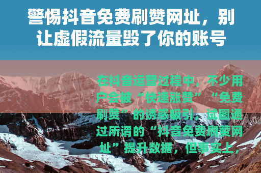 在抖音运营过程中,不少用户会被“快速涨赞”“免费刷赞”的诱惑吸引,试图通过所谓的“抖音免费刷赞网址”提升数据,但事实上,这类行为不仅违反平台规则,还潜藏着多重风险,甚至可能让你得不偿失。