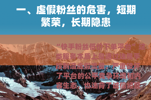 “快手粉丝低价下单平台”这类服务本质上是通过违规手段制造虚假流量,严重破坏了平台的公平竞争环境和内容生态,也违背了诚信经营的基本原则,以下从几个角度分析其危害性及正确的发展路径: