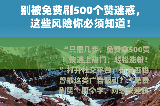 打开社交平台,你是否也曾被这类广告吸引?“免费刷赞”四个字,对想快速获得关注的创作者或普通用户来说,简直是“懒人福音”——不用费力做内容,就能轻松拥有高互动数据,但真相真的如此美好吗?我们就来撕开“免费刷500个赞平台”的伪装,看看背后藏着多少陷阱。