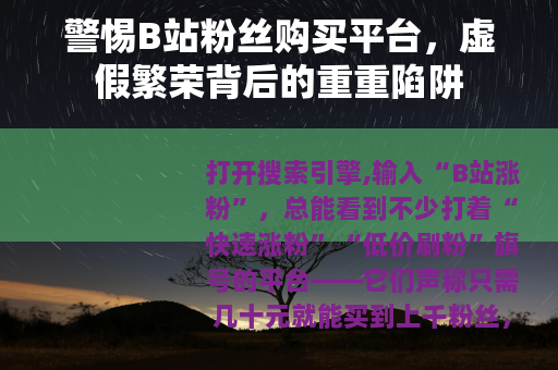 打开搜索引擎,输入“B站涨粉”,总能看到不少打着“快速涨粉”“低价刷粉”旗号的平台——它们声称只需几十元就能买到上千粉丝,甚至承诺“真人互动”“不掉粉”,对刚起步的UP主来说,这些“捷径”似乎能快速跨越1000粉的创作激励门槛,或是让账号看起来“更有排面”,但真相是,这些所谓的“B站粉丝购买平台”,不仅藏着违规风险,更可能让你的账号陷入万劫不复的境地。