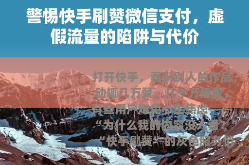 打开快手,看到别人的作品动辄几万赞、几十万播放,有些用户难免心生焦虑——“为什么我的内容没人看?”“快手刷赞”的灰色服务悄然滋生,甚至不少商家打着“微信支付、秒到账”的旗号吸引眼球,但这种看似便捷的“捷径”,实则是包裹着糖衣的陷阱,藏着违规风险、财产损失与账号毁灭的多重代价。