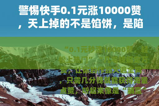 “0.1元秒涨10000赞,轻松上热门”“几毛钱搞定万赞,让你的作品火遍全网”,只需几分钱就能获得海量点赞,听起来像是“躺赢”的捷径,但真相背后,藏着的却是精心设计的骗局和看不见的风险。